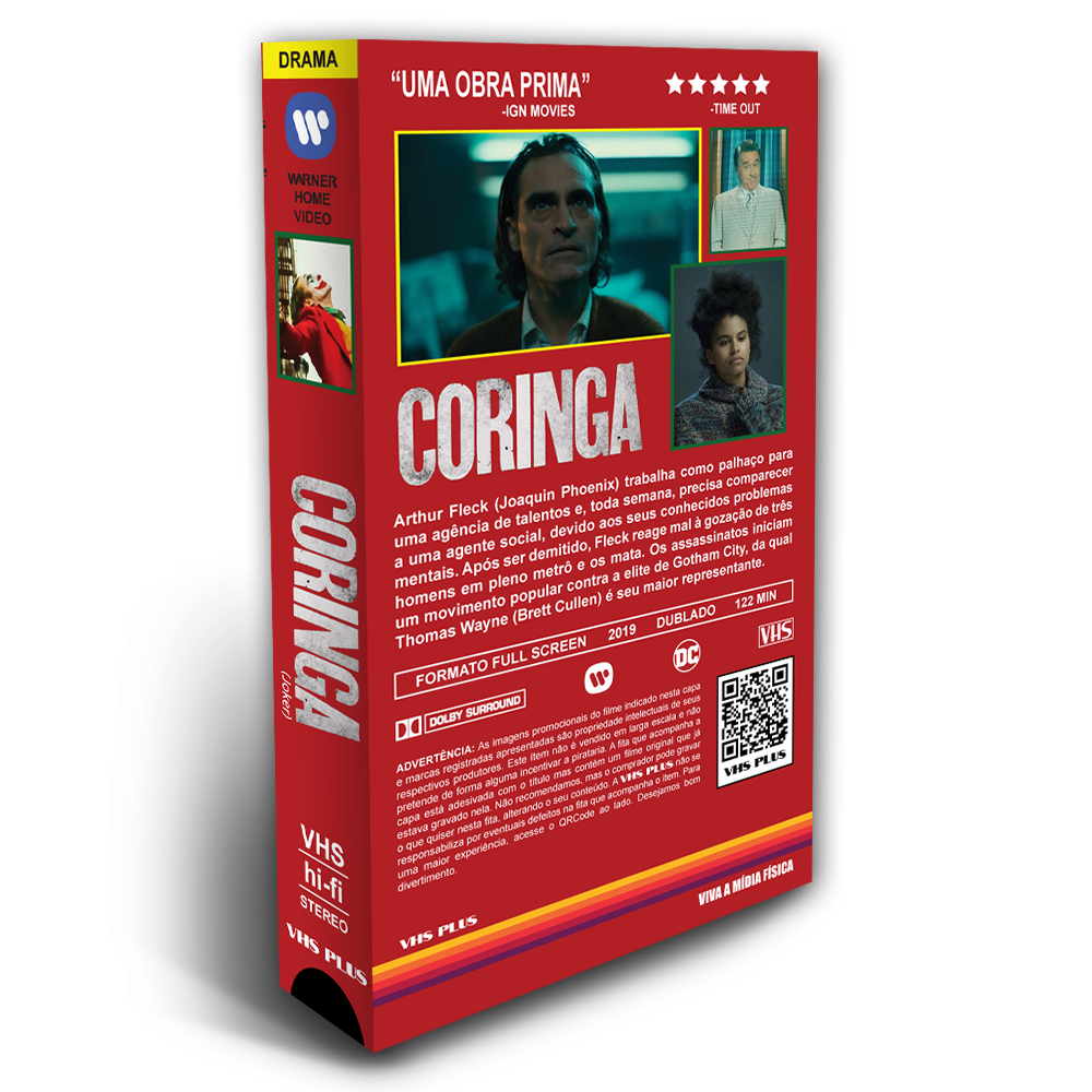 A Fita VHS utilizada é uma fita antiga recuperada em boas condições de ser novamente gravada e assistida. Vai gravada em velocidade SP em NTSC (Padrão Americano/Internacional). A Capa é impressa em papel fotográfico com gramatura de 180, protegido com plástico adesivo (tipo Contact) ou em Estojo com encarte do mesmo papel e qualidade (verificar disponibilidade de Estojo). A fita vai adesivada com o nome do filme e acompanha 2 cards impressos com mesma qualidade.